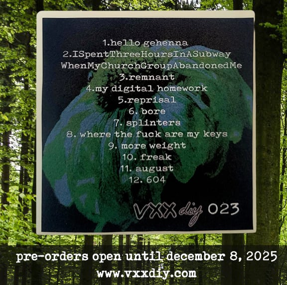 this will be a pre-order as each cd and zine will be hand made and numbered. pre-orders are open now and will close on december 8, 2025 @ 7pm pst. you can grab one at www.vxxdiy.com